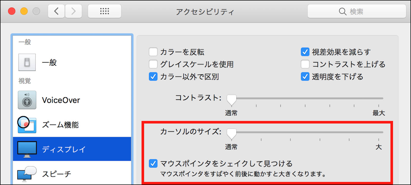 マウスポインタをシェイクして見つけるのチェックを外して元に戻りました。