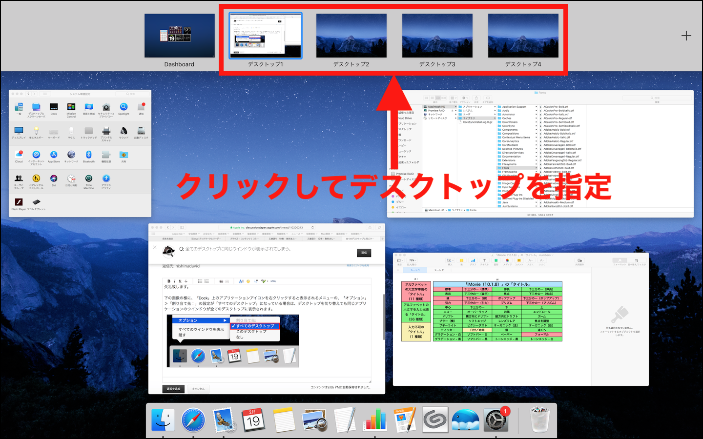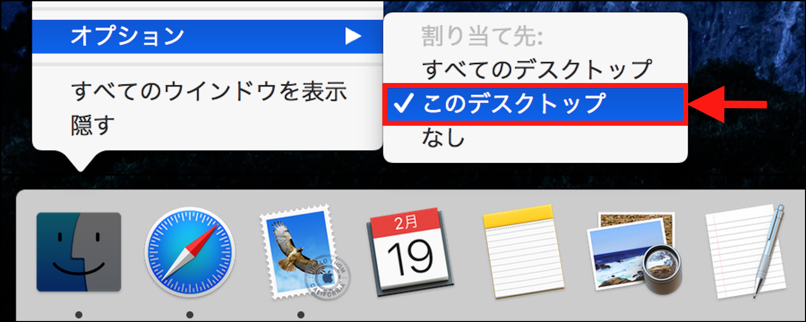 全てのデスクトップに同じウインドウが表示されてしまう。