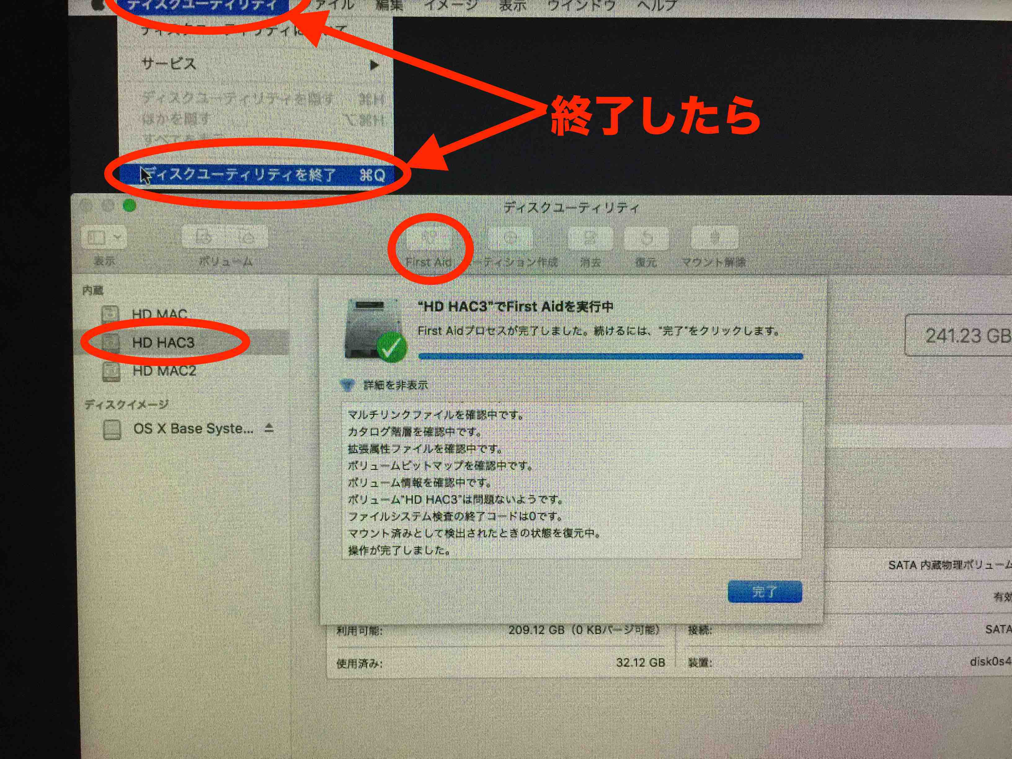 復元 システムからFirst Aidを実行