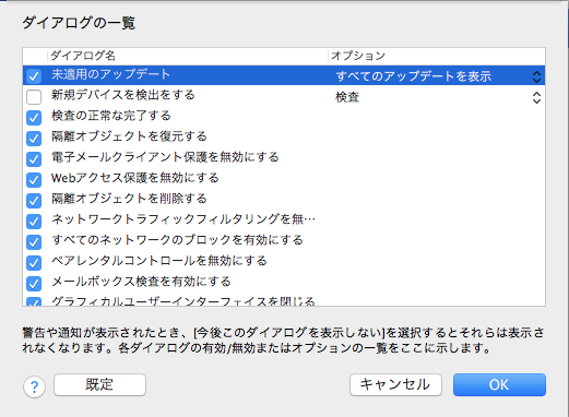 ESET>設定>詳細設定を表示する...>警告と通知>詳細オプション:設定...