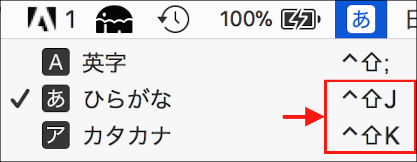 右上のひらがな入力とカタカナ入力をショートカット入力で、