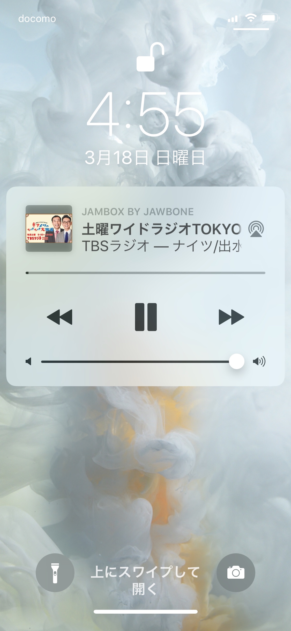 このスクショはラジコで土曜ワイドを聞いてる時ではなく、ミュージックで音楽を聞いてる時のものです。一度本体の電源を切るまではずっとこのラジコが残ったままになります。
