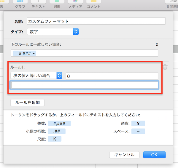 Numbers ゼロを非表示にしたい。