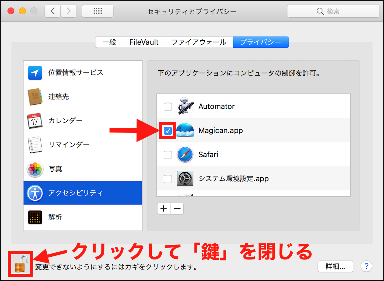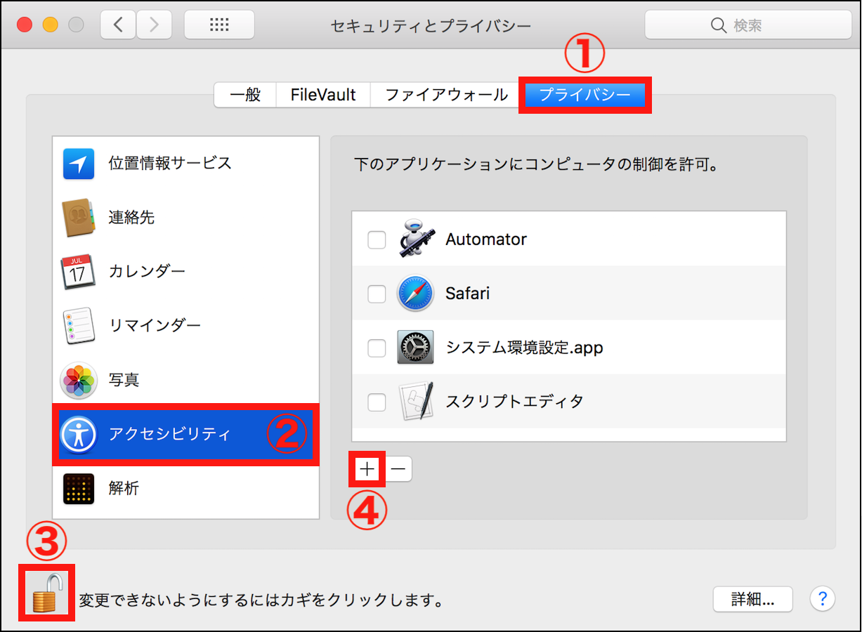 2. Click the Privacy tab, then select Accessibility in the list located to the left.