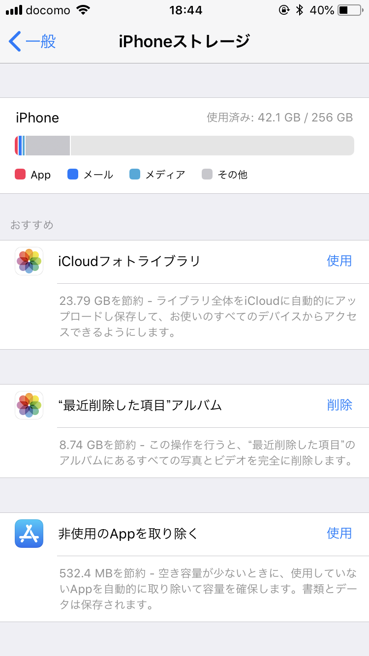設定>一般>iPhoneストレージ にて写真はどの位の容量ですか?