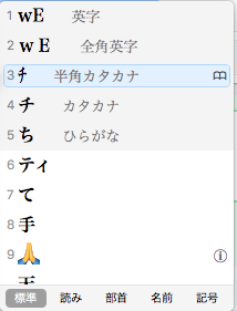 かな入力で「てぃ」を変換すると候補に出る半角カナが「チ」になる