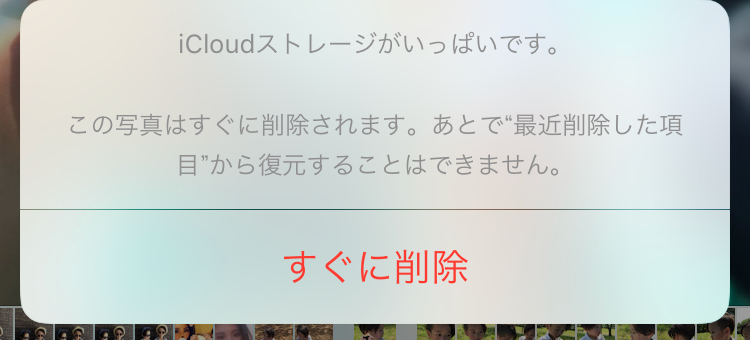 注意)iPhoneでiCloudフォトライブラリをオフにする際に、iPhoneに保存されている写真やビデオを削除するかどうか聞いてくるので、削除せずに、iPhoneに残すようにして下さい。