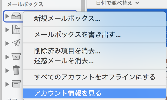 High Sierraにアップデートしたらメールの環境設定が空白になった。