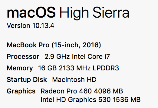 2016年12月にCTOでMacBook Pro 2016 15"を購入したものです。