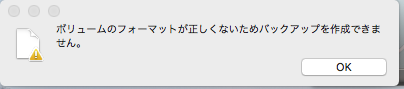 「ボリュームのフォーマットが正しくないためバックアップを作成できません。」