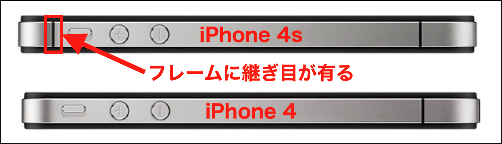 大輔192 さんがお使いの iPhone が iPhone 4S であるなら、下の画像の様に側面のフレーム(上側)に継ぎ目が有るはずですので、iOS のバージョンを iPhone 4S で使える最終バージョンの iOS 9.3.5 までアップデートして下さい。