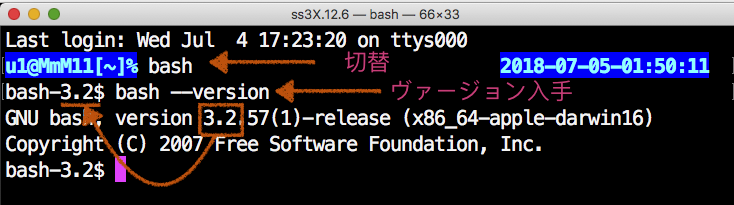 PCのターミナルにある"<ユーザ名>-<数字>: <ディレクトリ> <ユーザ 名>$"ついて