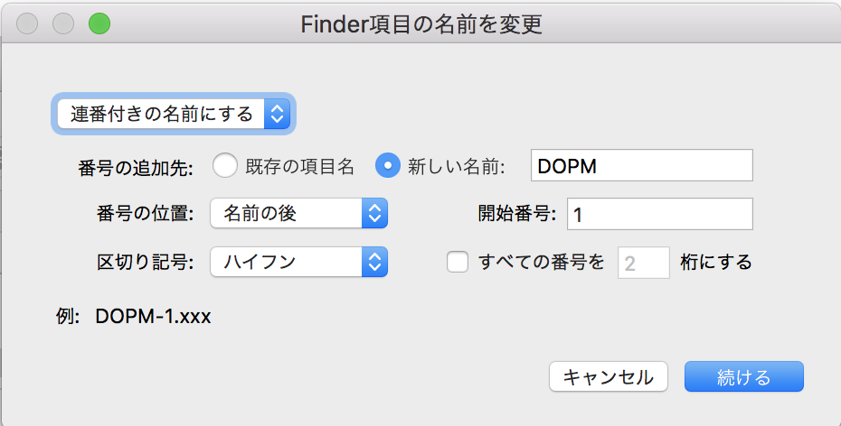 Finderでの「〜項目の名前を変更」をしていると時間がかかるため、Automatorを使用していました。