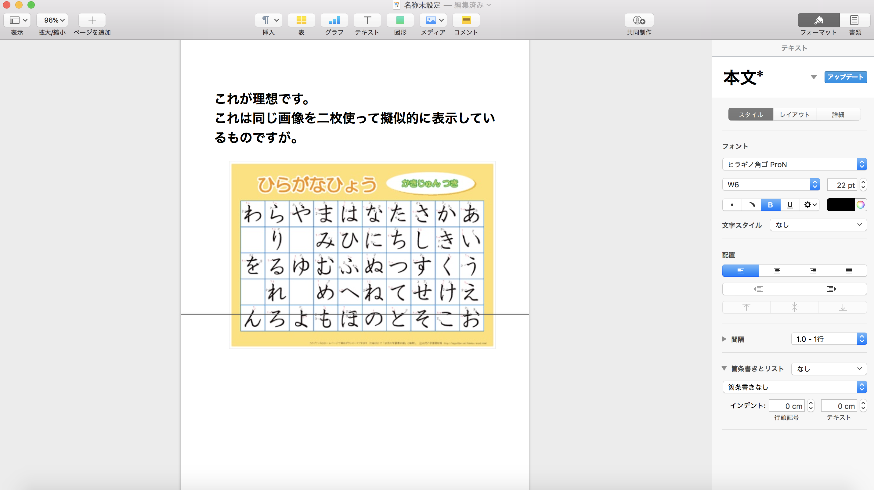 設定次第ではできるようですが、その方法を使うなら私はページを贅沢に使います(これは、提案された方法を否定してるわけではありません) 又は、表示領域に制限のないソフトウェアを使うと思う。 例えばテキストエディット.Appやブラウザで表示できるhtml形式で作成する等です。