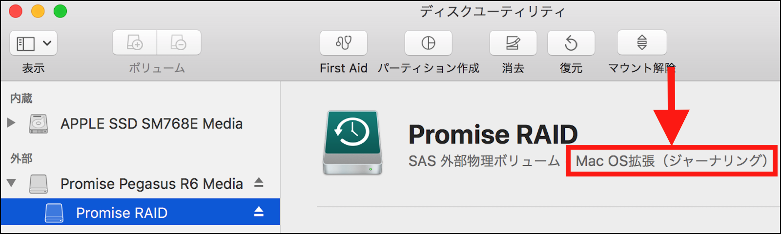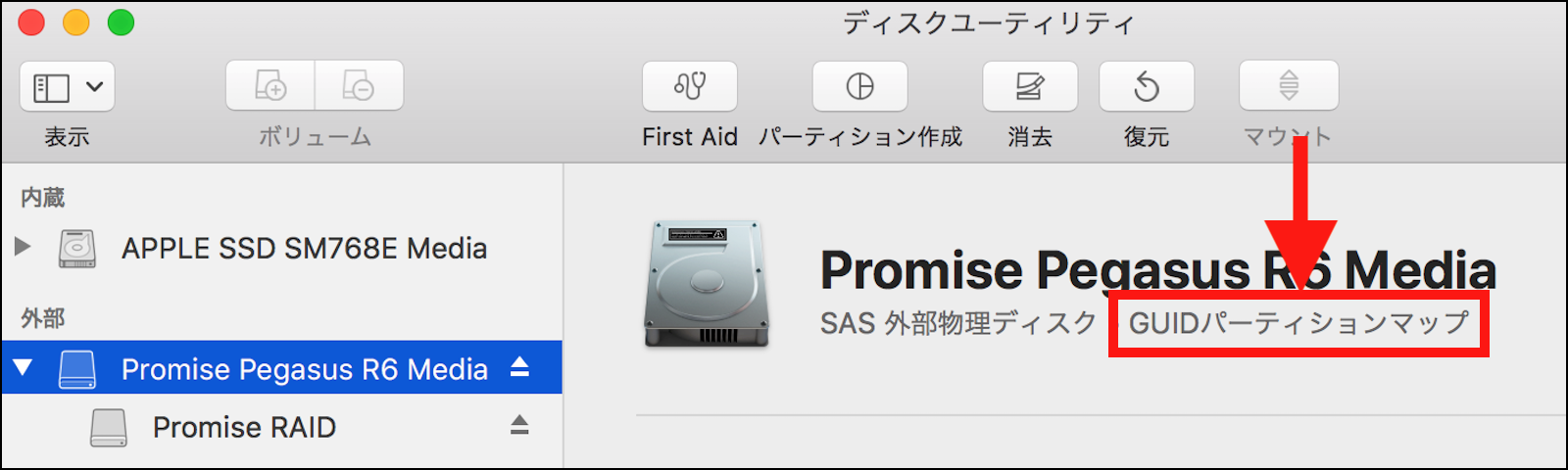 また、「ディスクユーティリティ」で外付け HDD が、「GUID パーティションマップ」、「Mac OS拡張(ジャーナリング)」でフォーマットされているか確認して見て下さい。