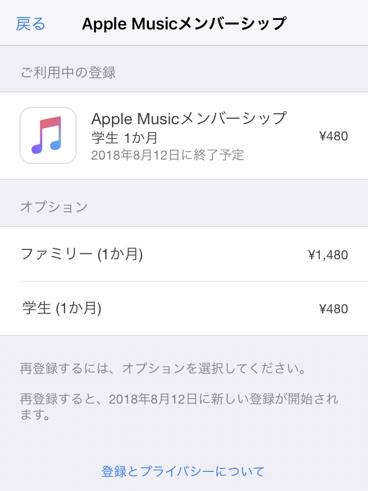 - 学生でなくなったか、学生プランの 48 か月間の期間を満了した事が確認された場合、自動的に Apple Music の個人プランに切り替わります。