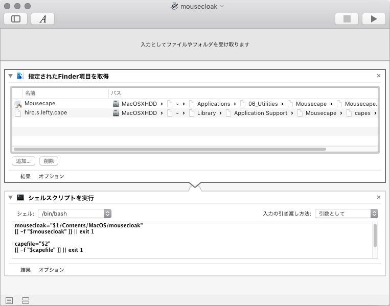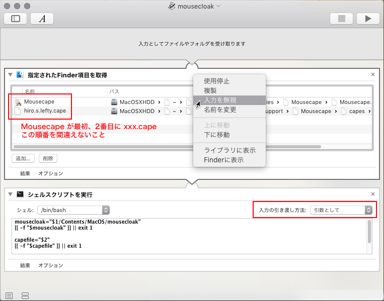 "$mousecloak" -a "$capefile" >/dev/null動作確認: macOS 10.13.6