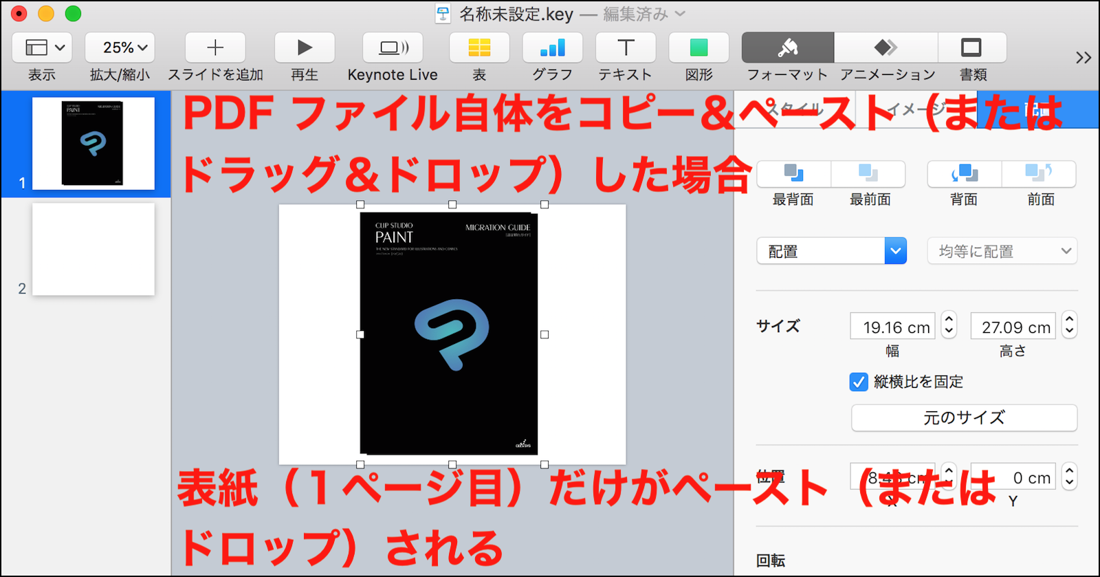 PDF 62枚の束を1活で アプリを使わずにKEYNOTEに移したいのですが、どういうやり方がありますか?