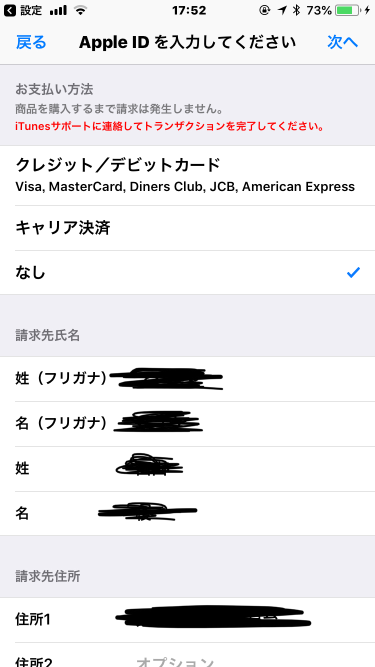 iTunesサポートのトランザクション