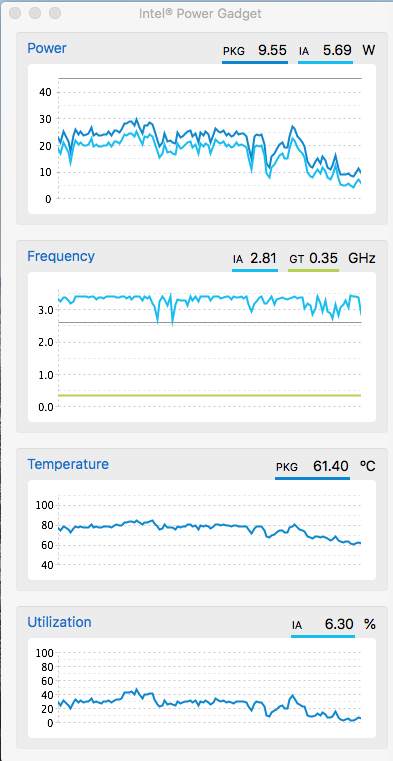 Intel Power Intel Power Gadgetのみを立ち上げCPUの状態を見ると、