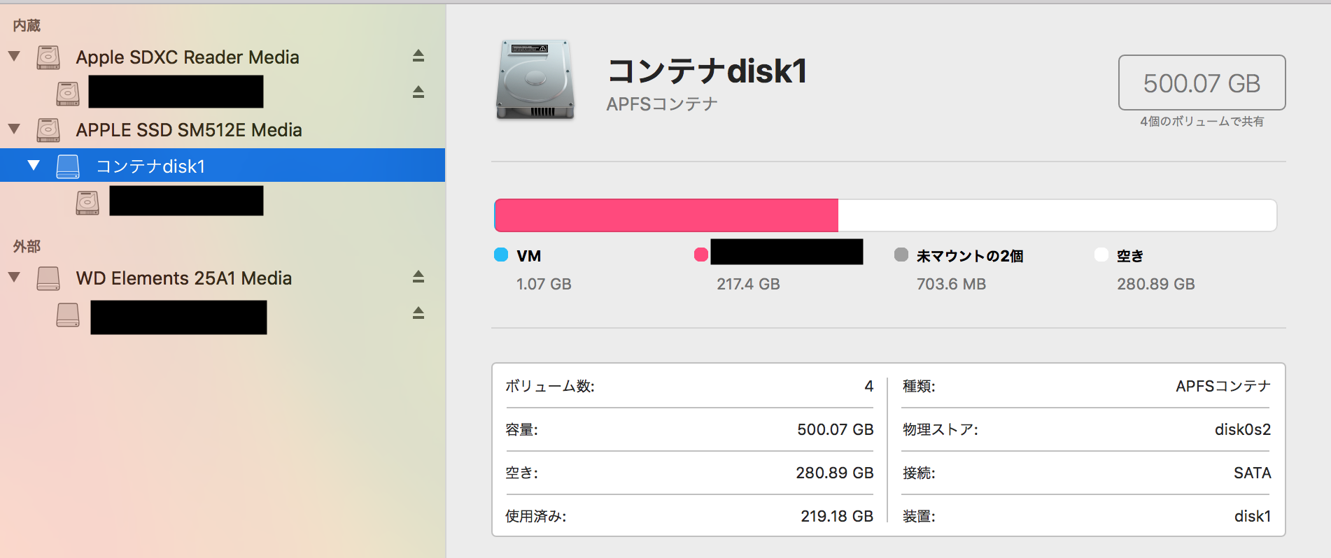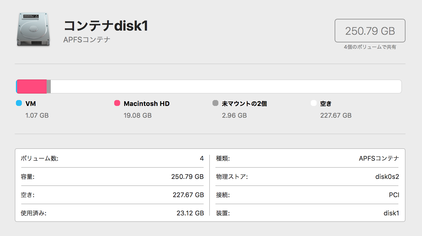 ただし、正常なら、(high sierraでは)Macintosh HDのコンテナ内に含まれてます。