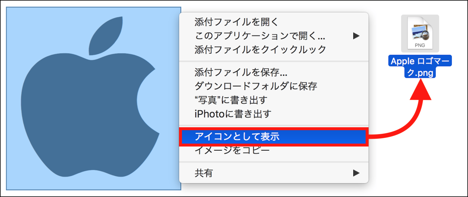 添付ファイルをを右クリックすると表示されるメニューから、「アイコンとして表示」を選択しても一時的な物で、他のメッセージを閲覧して戻るだけで元に戻ってしまいますので、事実上「メール(11.5)」では、メール本文内の添付ファイルを常にアイコンとして表示する事は出来ない様です。