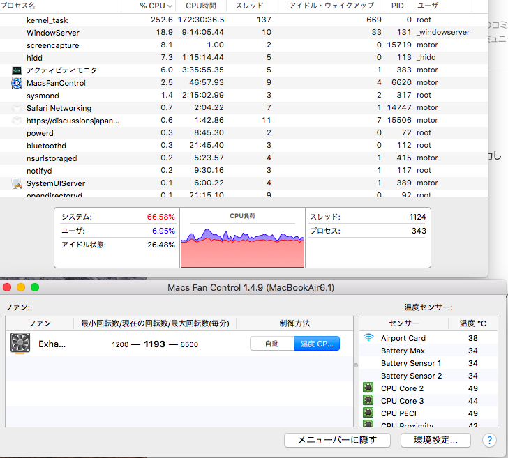 CPUの温度はそれほど上がってないのにファンもいつも回ってます。