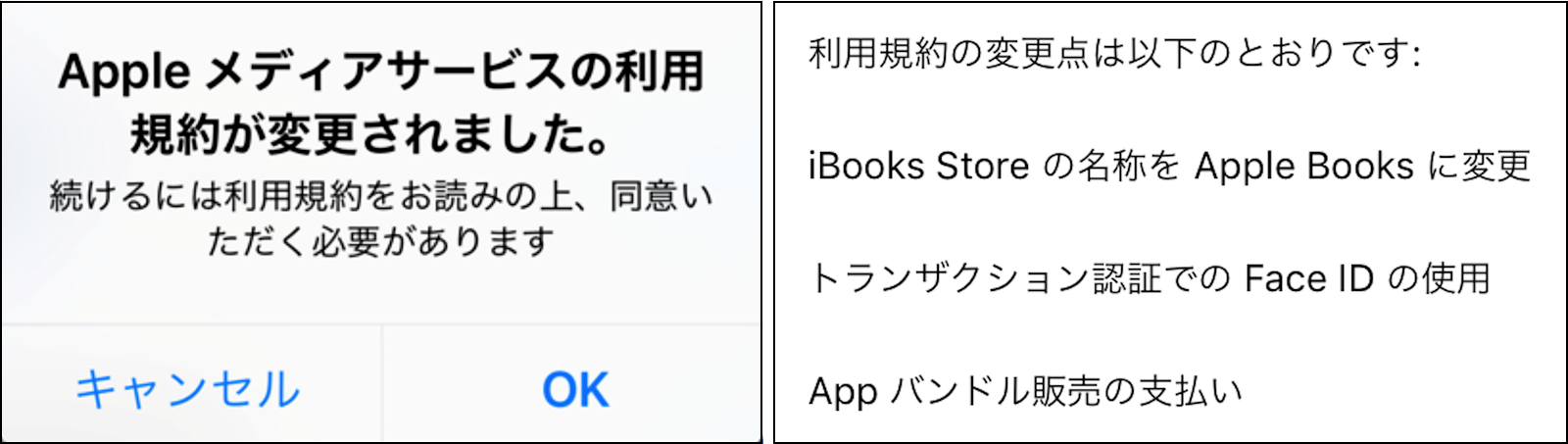ちなみに、今回の「Apple メディアサービスの利用規約」の変更は、以下の3点です。