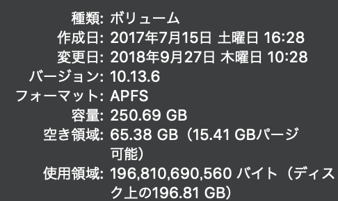 High Sierraになりすべて250GBの内臓ストレージについてMacBook proとMacBook 2010を同じ状態にしました。