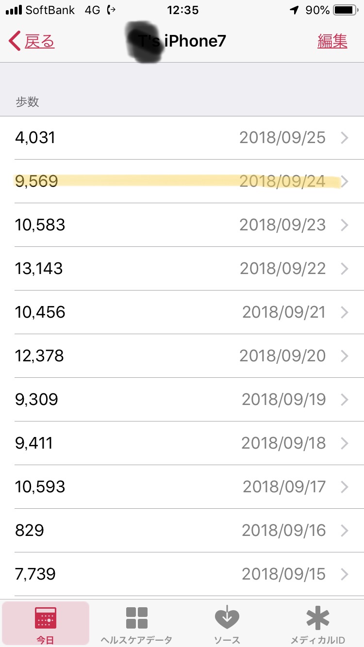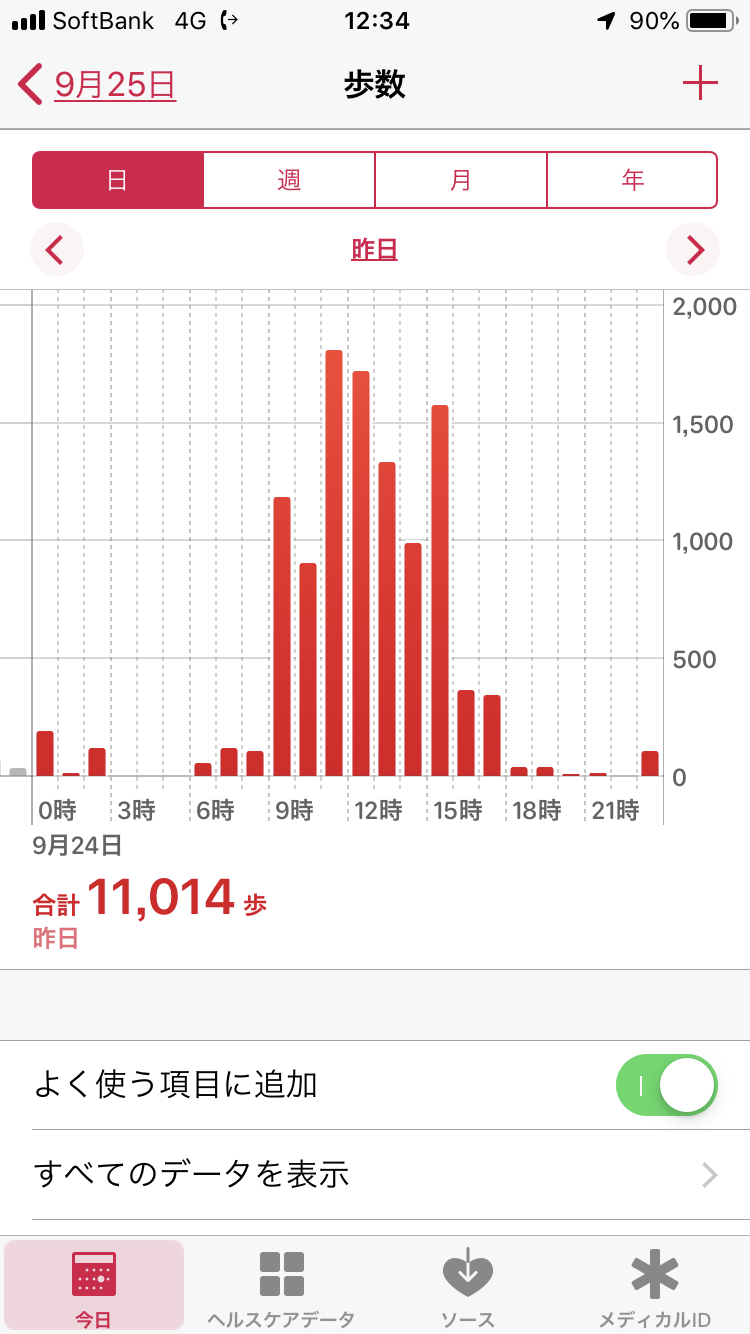 ヘルスケアアプリで歩数の詳細を見てみると、何か分かるかも。