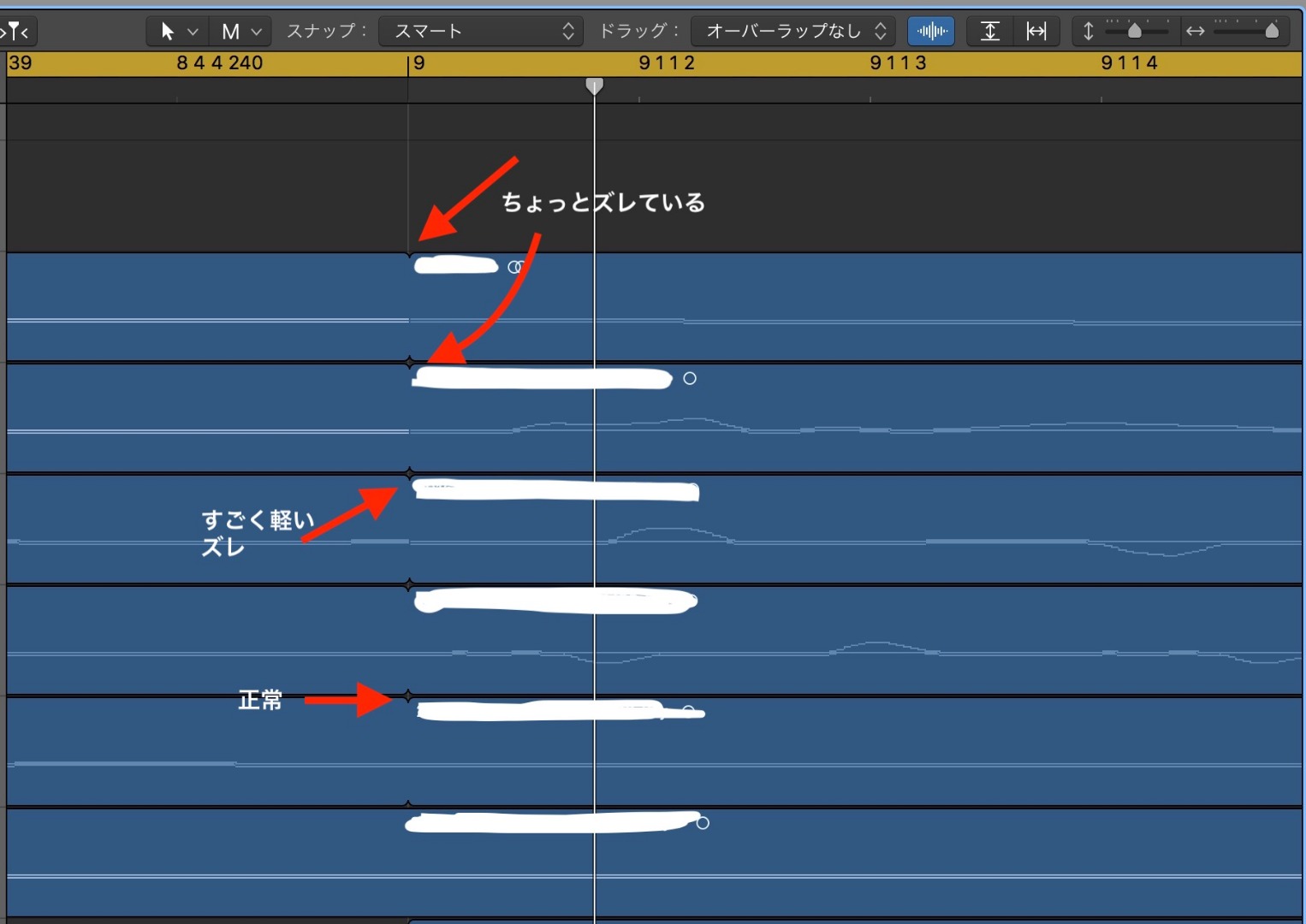 Logic Pro X でオーディオを最大限に拡大した時のズレについて