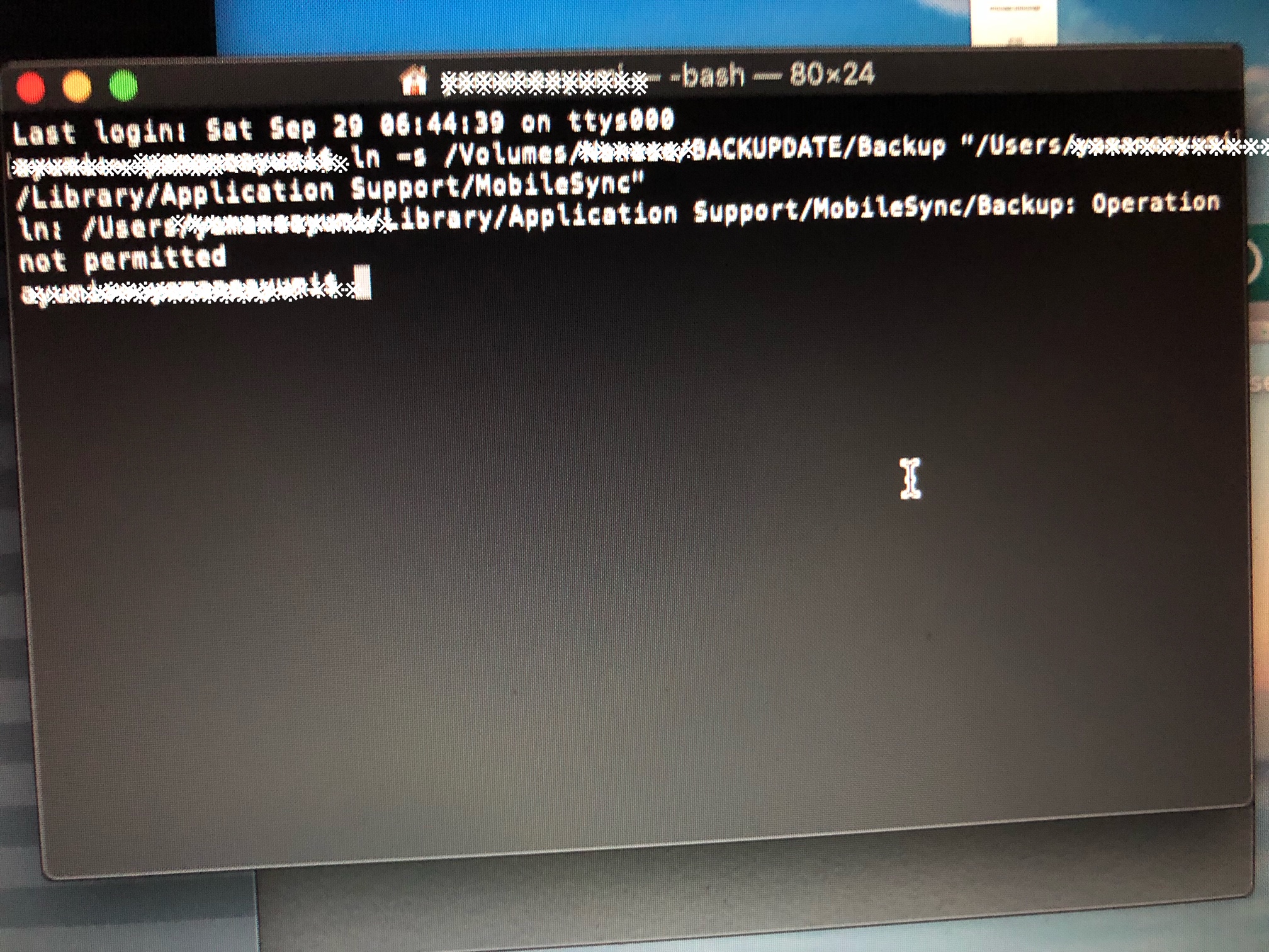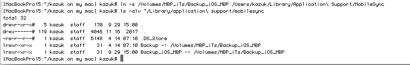 application support>mobile sync>backup こちらのbackupデータを外付けHDDにコピーした上で、ターミナルには下記のシンボリックリンクを貼りました。