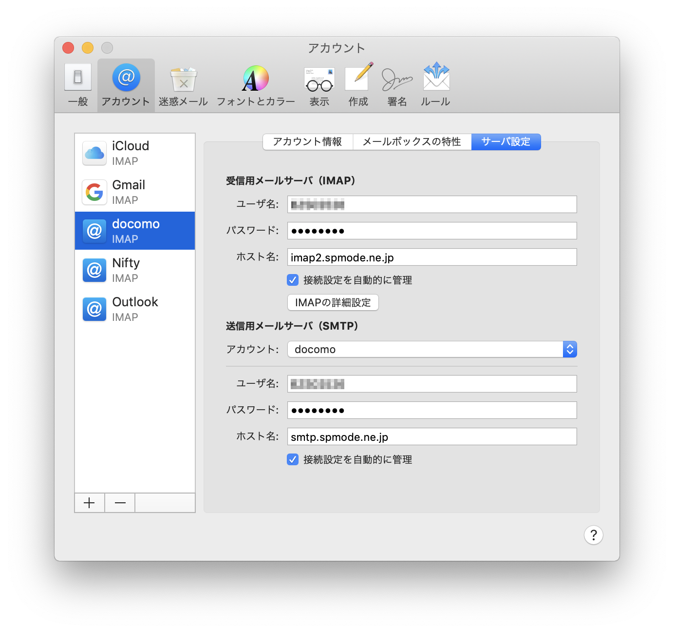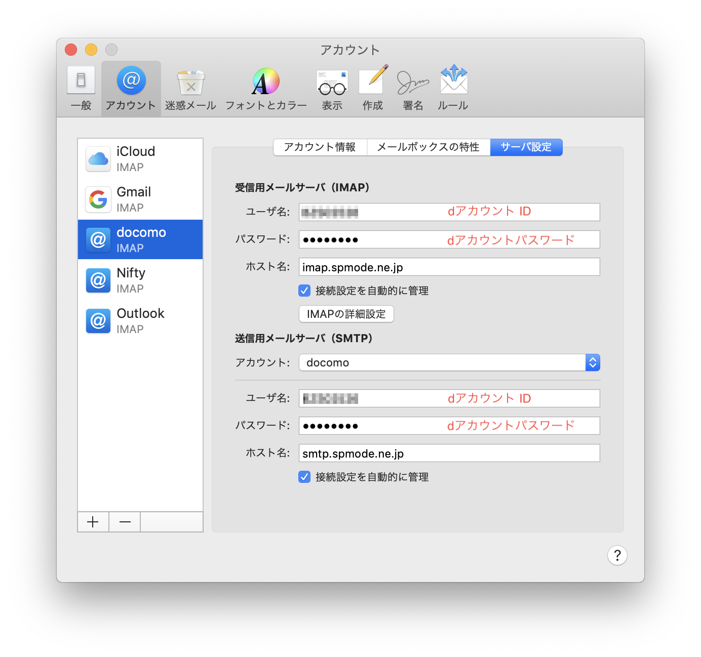 MojaveにアップデートしたMac BookAirにドコモメールを設定するには