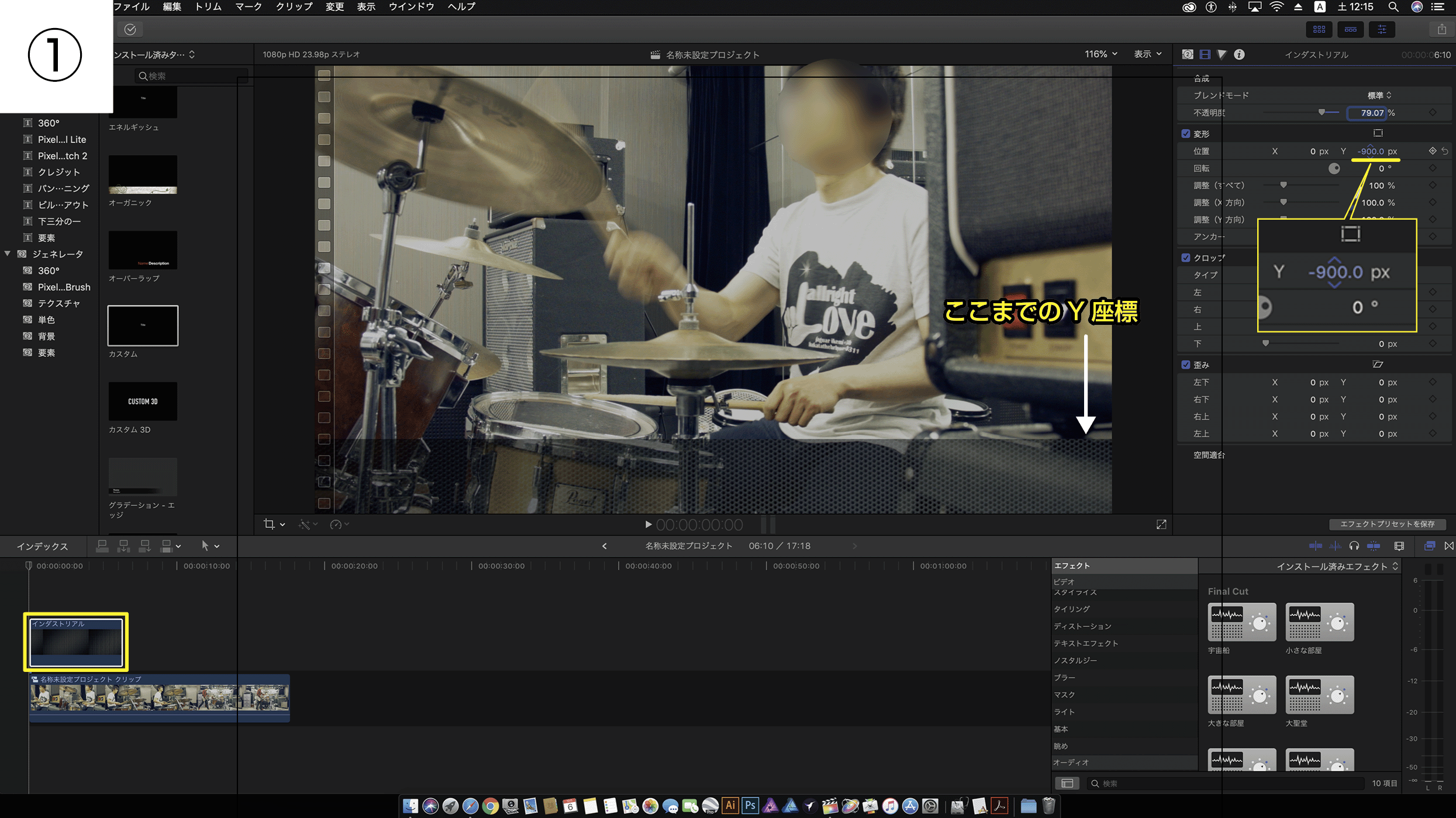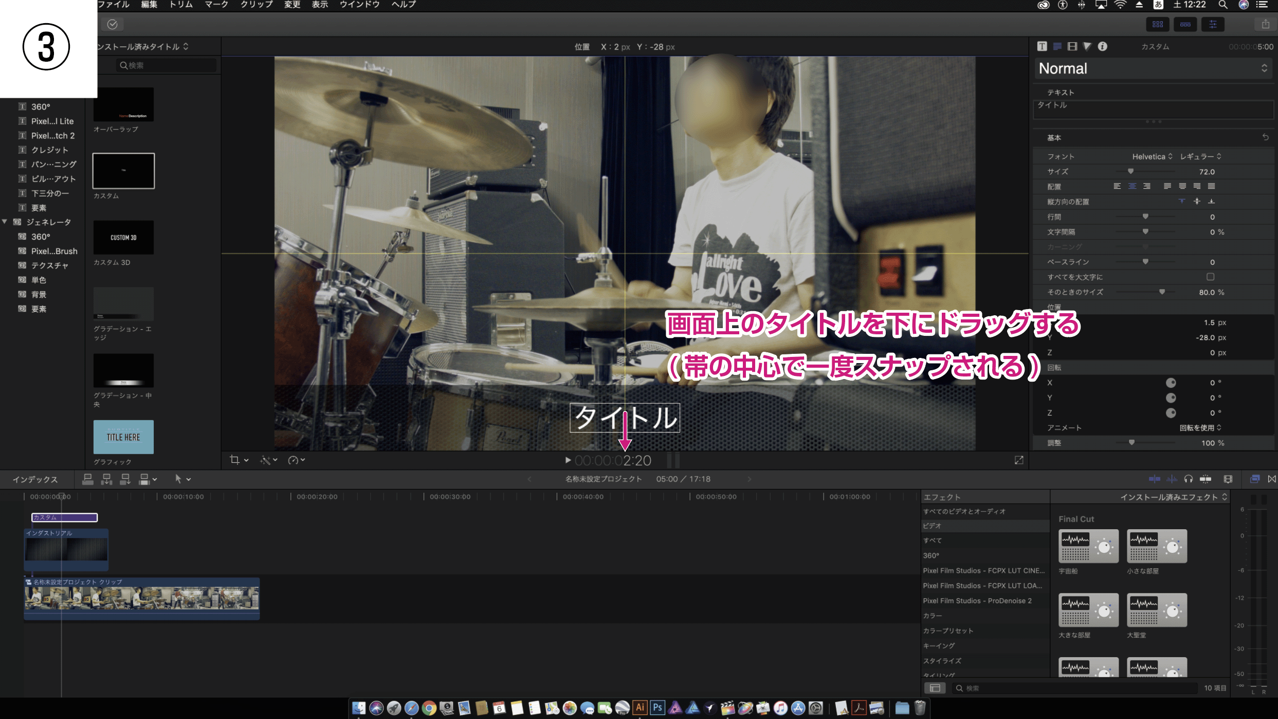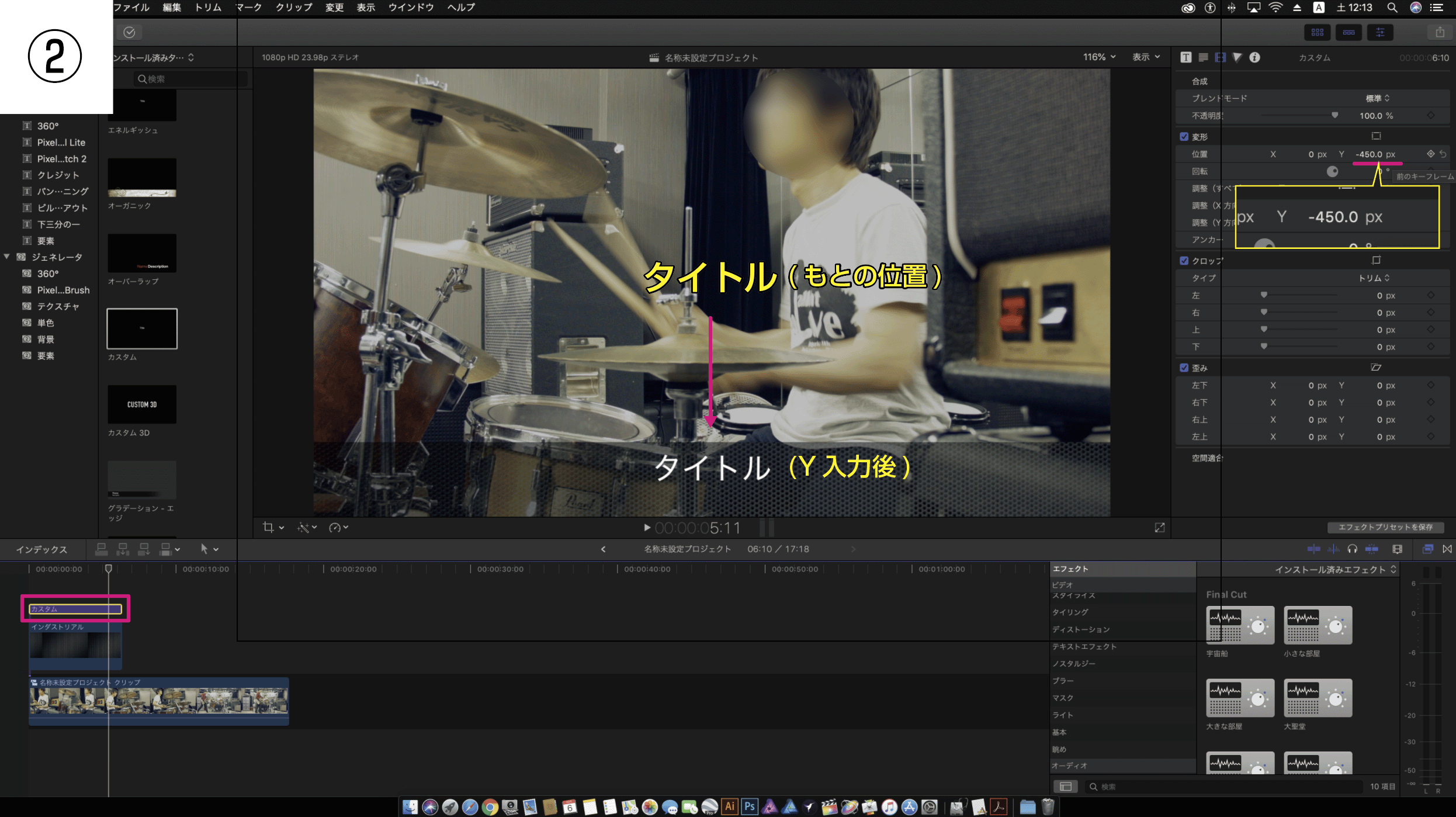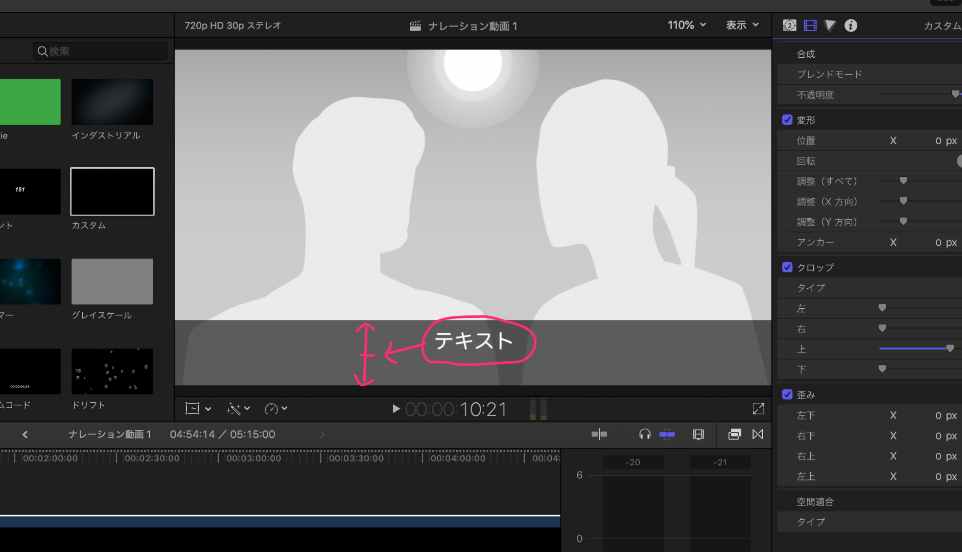Final Cut Pro X ジェネレータとテキストの配置(整列)