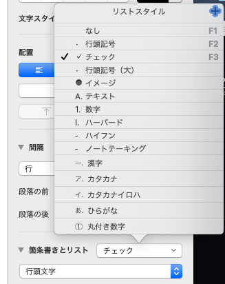 全く同じ機能はないと思います。 しかしながら、リスト表示の行頭記号にチェックを指定することができ、かつ、リストスタイルにキーボードショートカットを設定できます。 なので、ファンクションキーのキーストロークだけで、項目にチェックを入れたり、外したりという操作は可能だと思います。