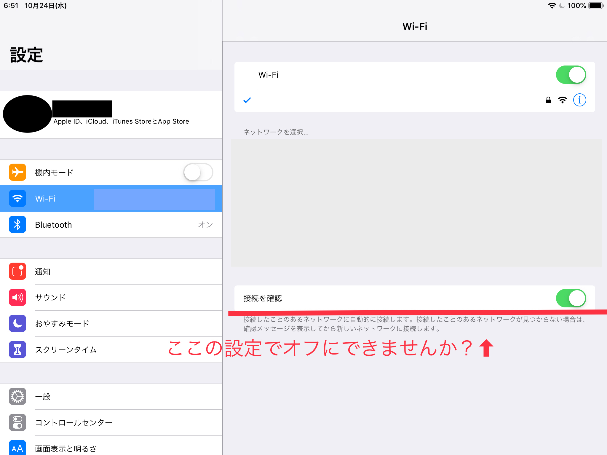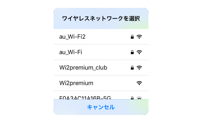 「ワイヤレスネットワークを選択」を非表示にする方法