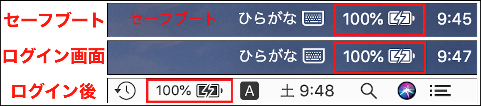 また、充電開始する残容量もMacによって異なるようなので、もしかするとログイン画面の表示が正しいのかもしれませんが、前記したシステム情報で確認できればスッキリするのでは?
