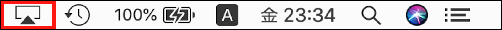 お使いの Mac で AirPlay ミラーリングがサポートされている場合は、Apple TV が Mac と同じネットワーク上に有れば、Mac のメニューバーに AirPlay 状況アイコン が表示されます。