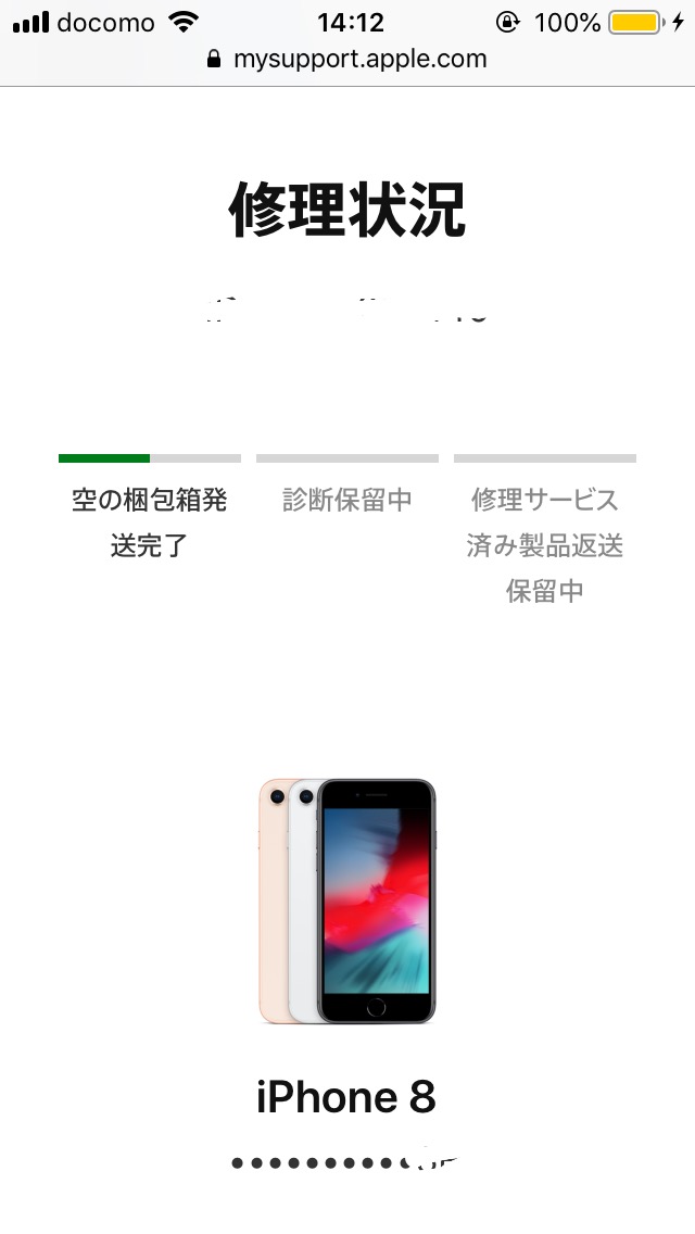 本日15日ですが、集荷から今までアップルからは一切メールなどでの連絡が無いので修理状況を確認してみましたが、今だに「梱包箱をお届け中です。」と表示されています。