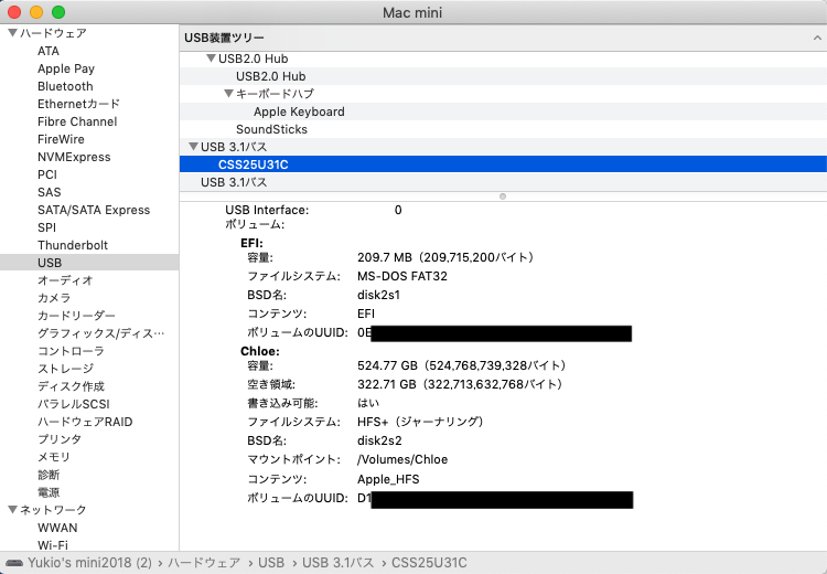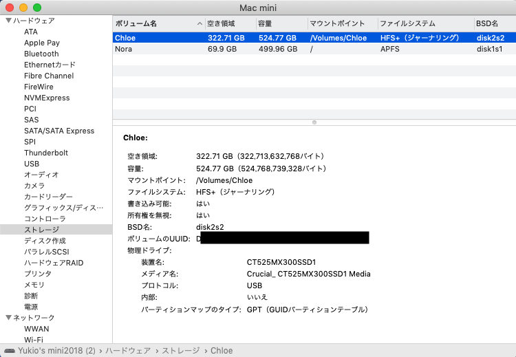 Mac mini(2018)の場合は、PCIe ベース SSD ですので、「PCI」を選択して見て下さい。