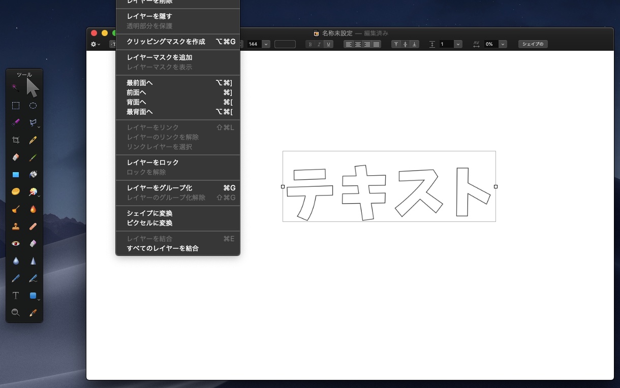 pixelmatorでテキストがアウトラインしかかけなくなりました。