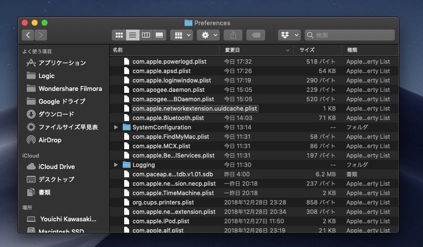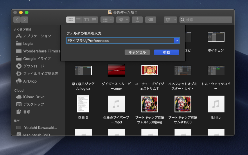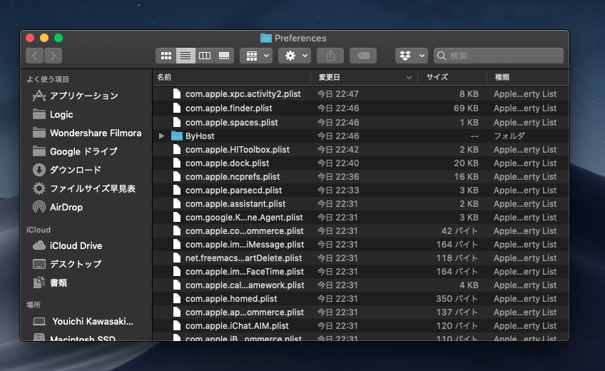 そう出来ていなかったので、「~/Library/Preferences」で移動してみましたが、同じ場所に行きました。
