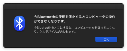 Bluetooth をオフにしてしまい、マウス、キーボードが使えない