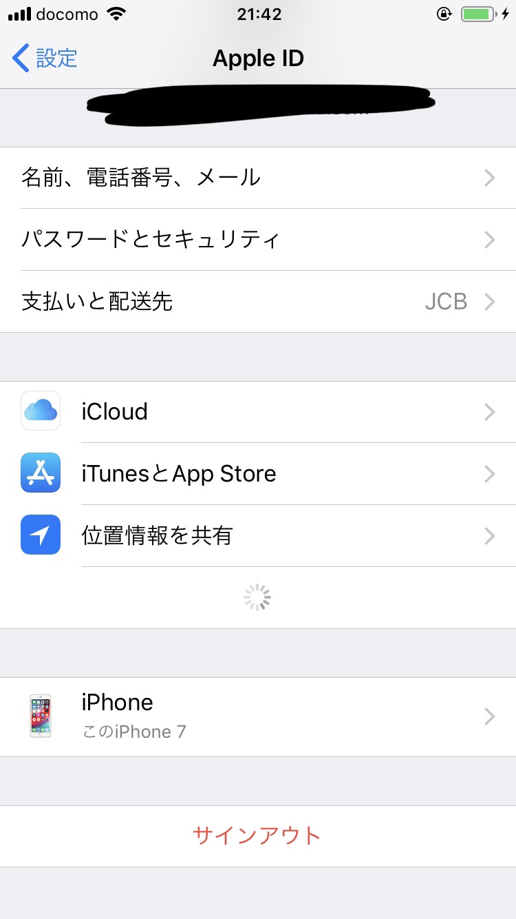 iPhoneでファミリー共有をしようとしてもずっと読み込み(円が回っている)状態で押すことができず故共有の設定ができません。