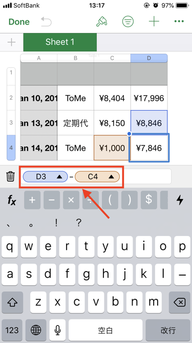 例えば、B2に「=A1-B1」と入力すると、行を入れ替えたときにも「=A1-B1」を計算してしまいますよね。