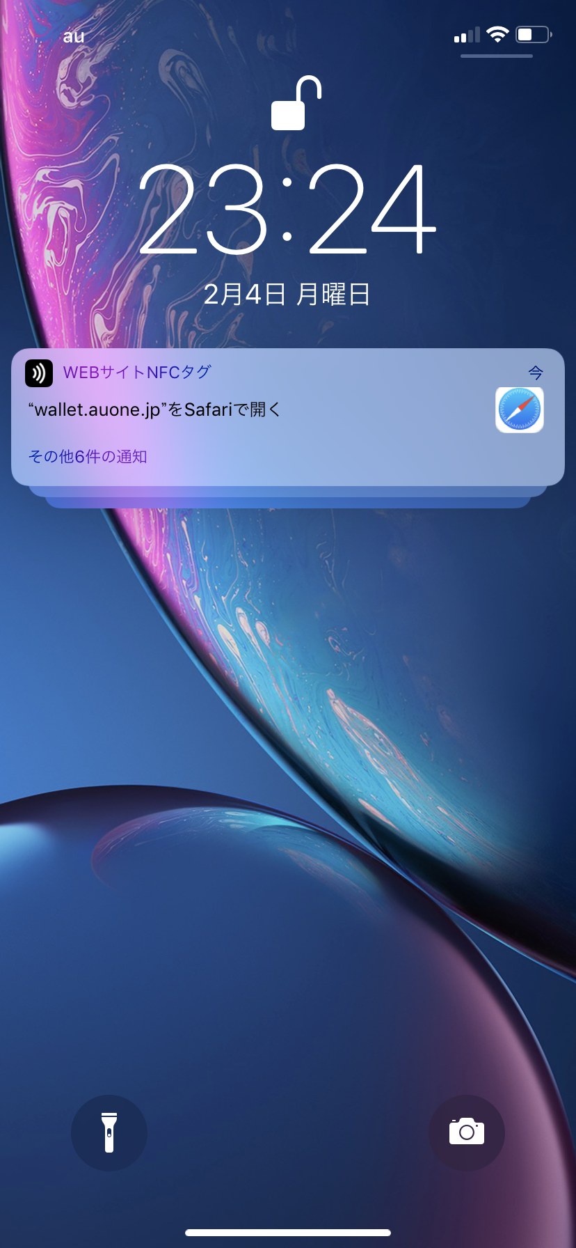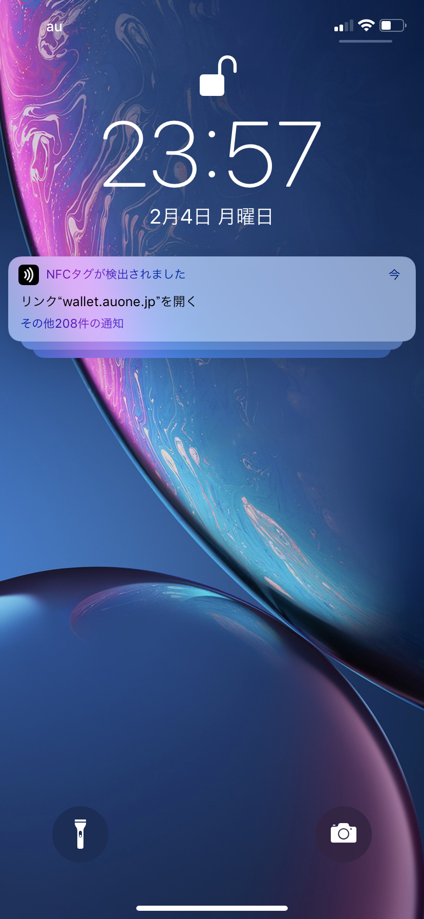 auのwalletカードをiPhoneXrにかざすと、NFCタグ通知が連続的(半永久的)に通知されてしまいます。