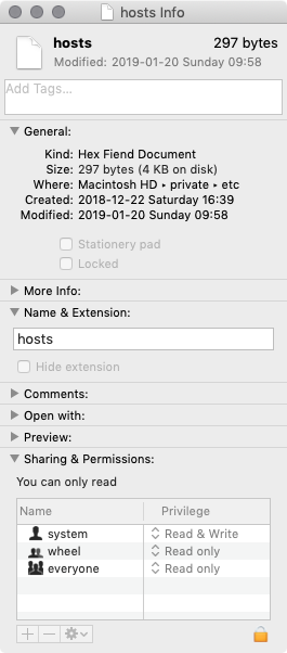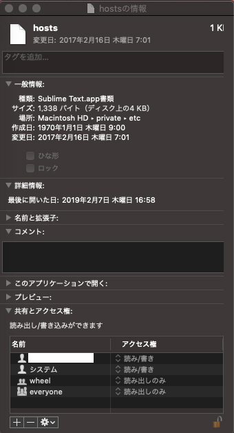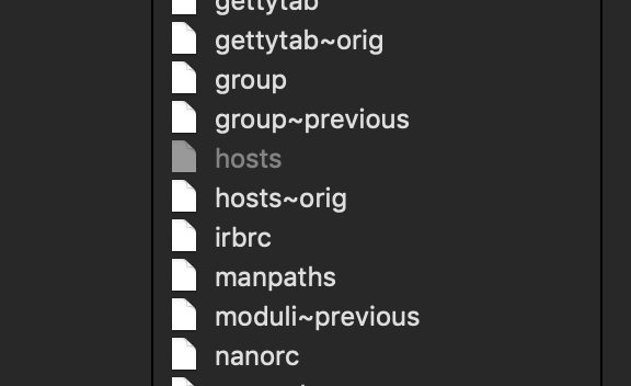 項目“hosts”はmacOSが使用しているため開けません。