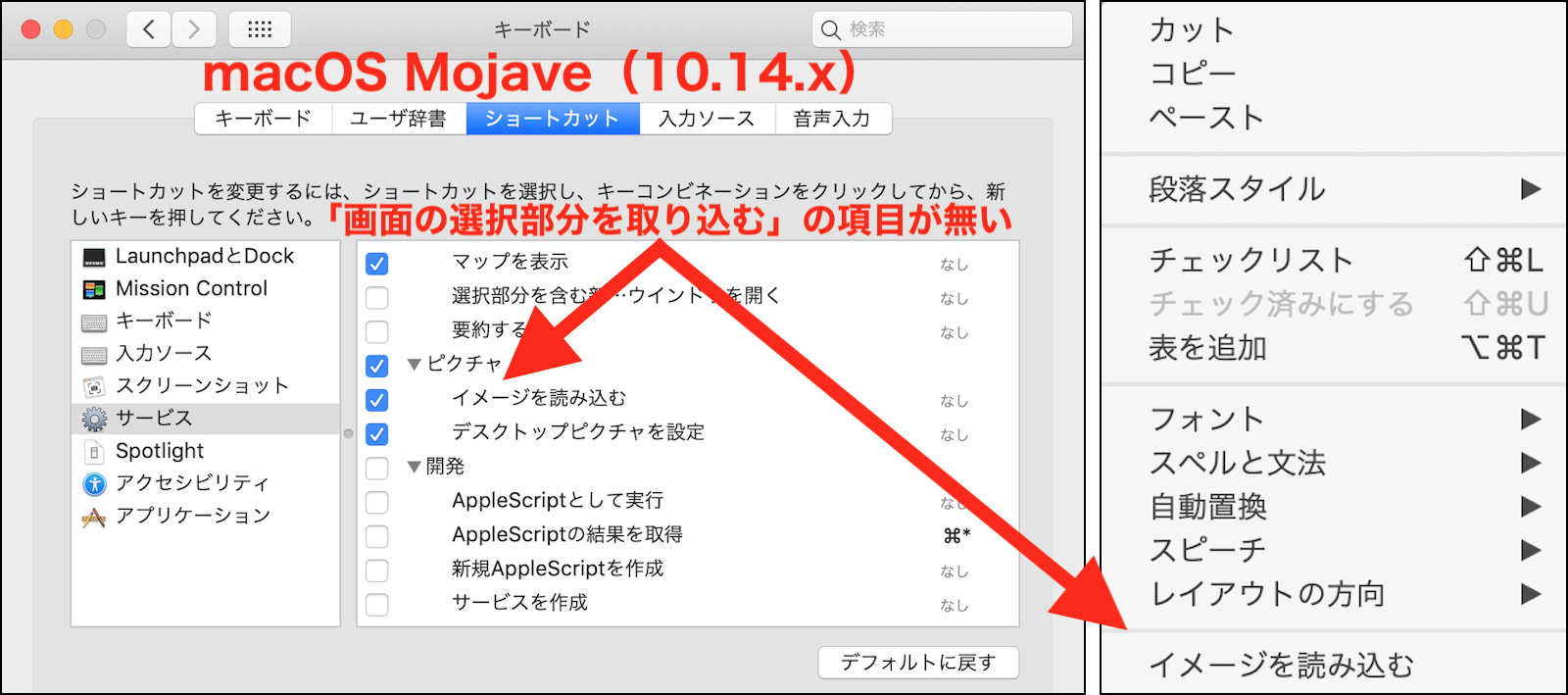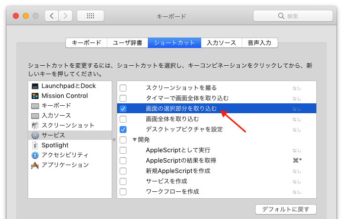 mac純正メモ帳右クリックで出てくる”画面の選択部分を取り込む”のショートカットキーを知りたい。