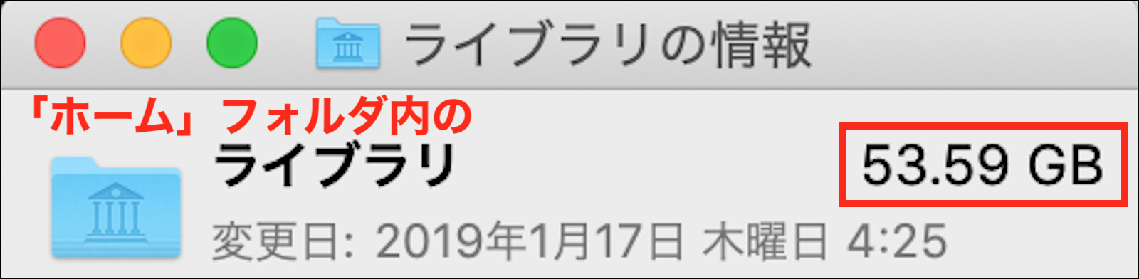 私の環境では、下の画像の様に「ホーム」フォルダ内の「ライブラリ」フォルダは、53.59 GB 程有りますので、「ライブラリ」フォルダを含めていない場合は、「ユーザ」フォルダと比較すると大きな差が出ると思います。