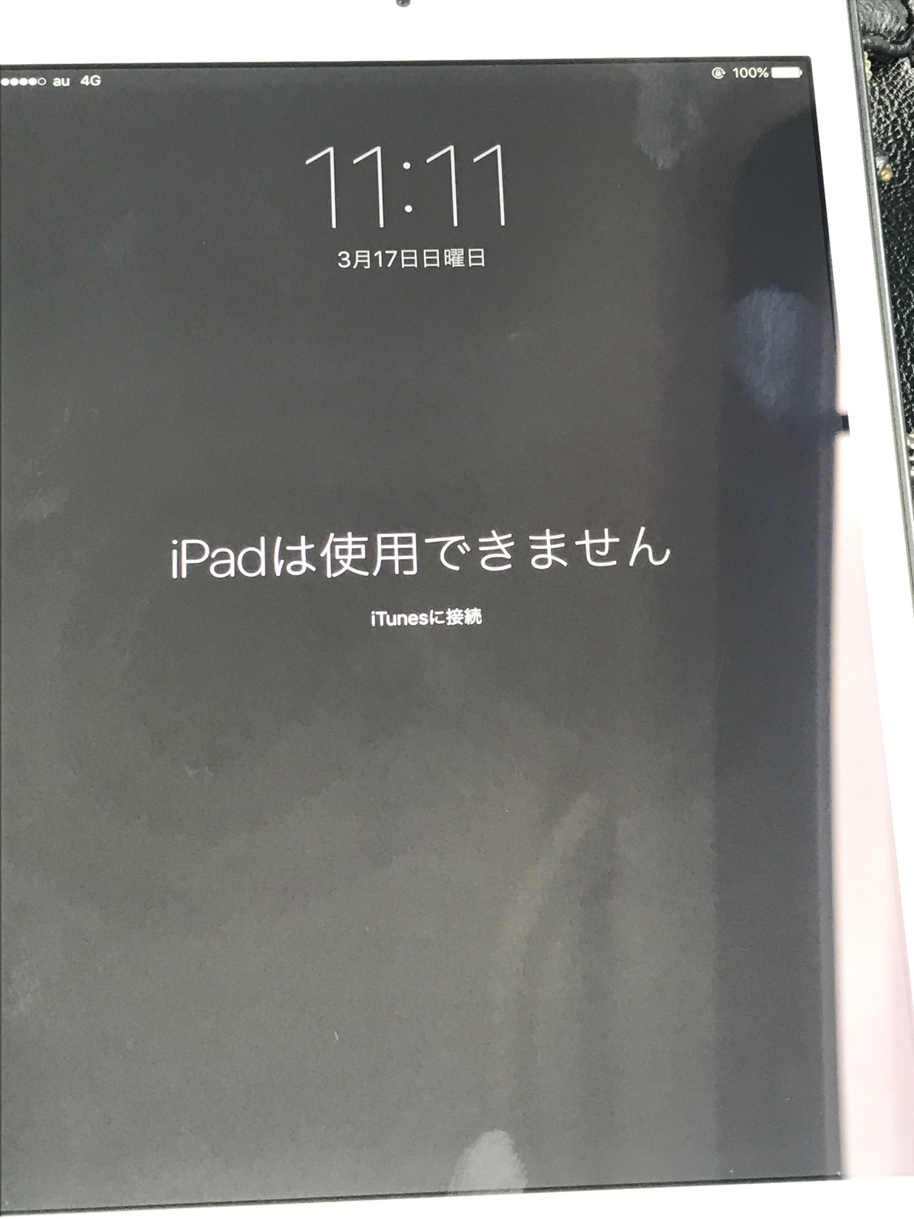 パスコードを忘れてしまって何回も間違えたら、"iPad は使ません iTunes に接続" と表示された